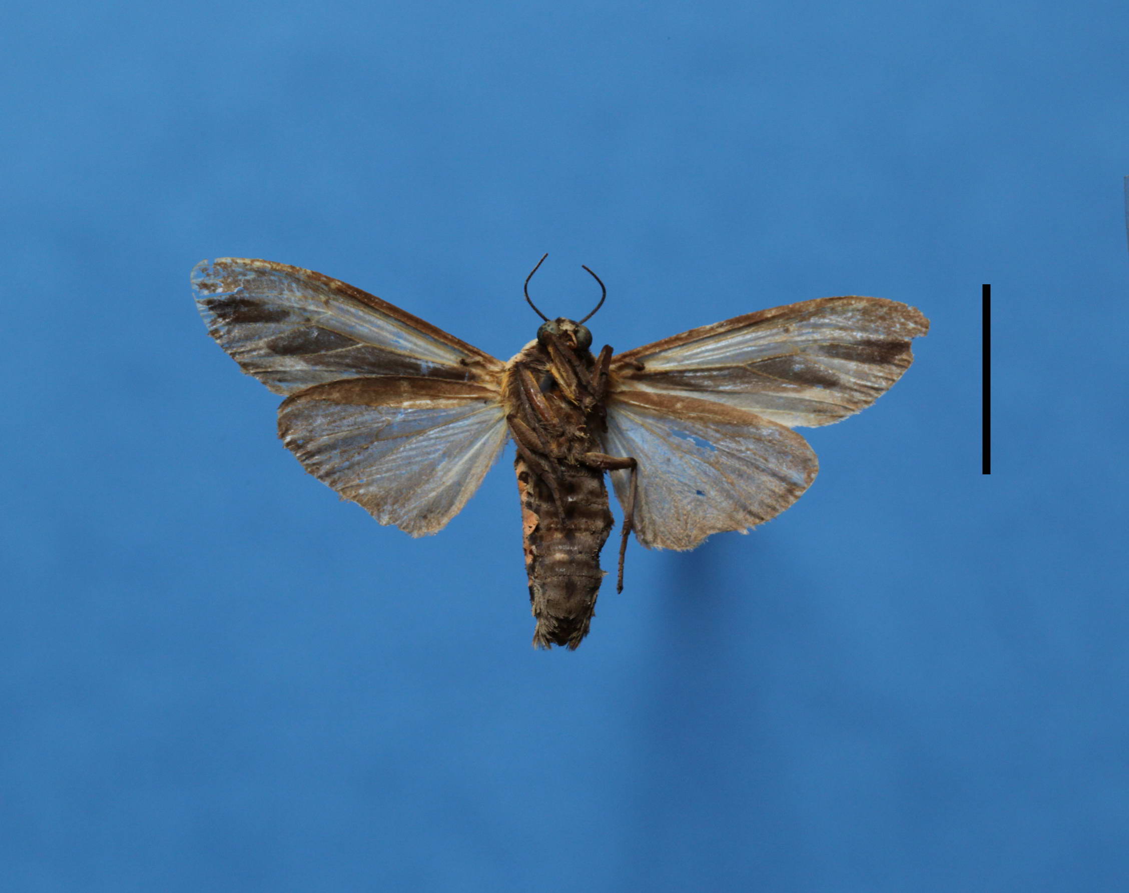 成虫:中小型,字型狭长,翅面黄褐色或黄白色,胸部背面黑色,前翅翅基至臀角有一条黑色的纵带但中央有断隔。